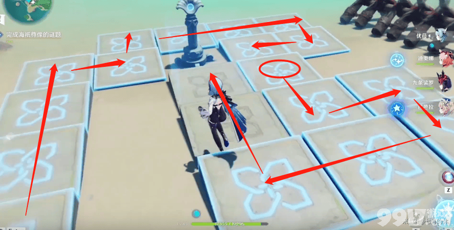 3、把附近三根元素方碑点亮,再去参拜尊像;